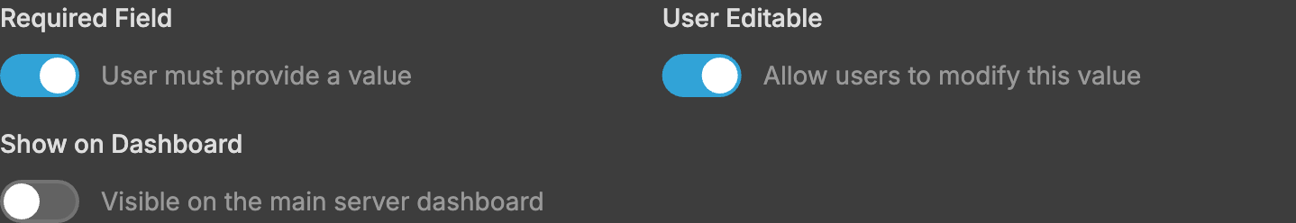 | Label | A human-readable name shown to users (e.g., "Max Players") |
